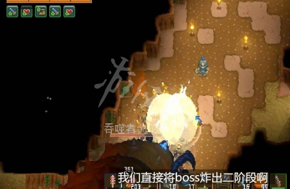 我們先在吞噬者戈爾姆會經過的地方先用鏟子把地上的史萊姆凝膠鏟掉(至少鏟出一段能讓你沿著內環自由行走的路),以至於不會長時間受到地面粘液-50%移速的debuff。