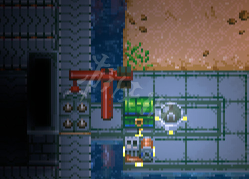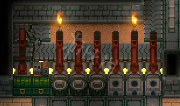 利用牆壁使毒史萊姆只能被上下運輸到地板陷阱,避開機器手臂被打的可能。