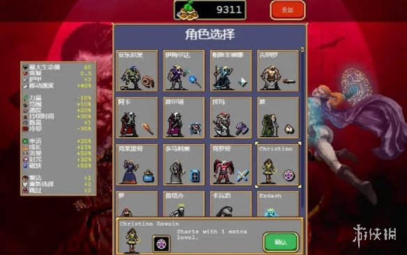 克里斯蒂娜(christine davain):生命值減了50%,攻擊加成減了35%,冷卻提升25%,其他不變,專屬武器新超武五芒星,開局角色自動就升1級。