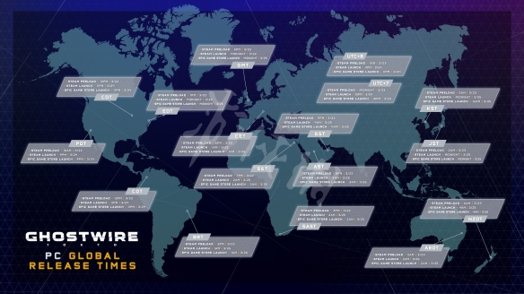 PC版本幽靈線東京的具體時間略有不同。Steam版預載時間是3月23日凌晨1:00,Steam版本以及Epic版本的正式解鎖時間是3月24日晚23:00。(以上時間都是北京時間,圖中未寫Epic預載時間)