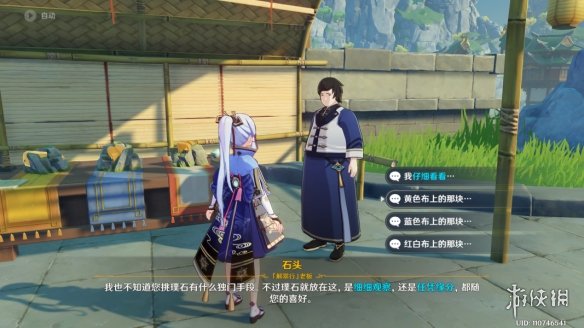 確認後好璞石是哪塊後,再次與石頭對話,選擇上圖黃色布上的那塊...(這里要注意了,據天舞幾次的實驗記錄顯示。這三塊石頭有可能全部都不是好的,也有可能全部都是好的,完全是隨機性刷新。若要完成成就,必須在第一次時就選中,否則無法完成成就)