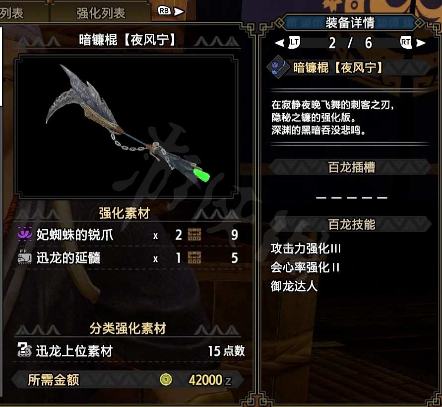 接下來說下個人配裝思路,由於用的是迅龍棍,配合弱點特效基本有效部位能到90%會心,第二套是無需考慮什麼部位都有80%會心,當然也可以調整成滿會心,達人珠拆成痛擊珠,超心珠拆一個成痛擊珠即可。狩獵期間天慧套80%血以下傷害能提升很多,畢竟是校服套,這個就不用多考慮了。