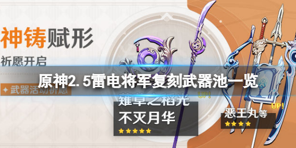 原神雷電將軍復刻武器池是什麼?近期官方正式公布了2.5雷電將軍復刻的武器池,很多小夥伴可能還不是很了解吧,今天小編給大家帶來原神2.5雷電將軍復刻武器池一覽,快來看一下吧。