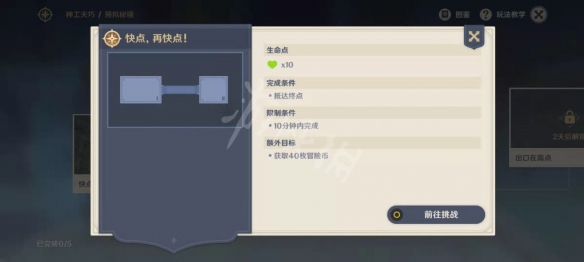 這個秘境是個教學關卡,難度很低,類似於超級瑪麗吃金幣,金幣一共40個,但是吃30個就能拿滿獎勵。