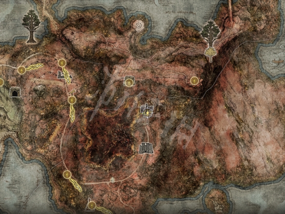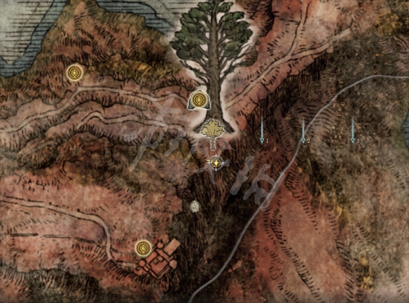 畫上所畫的位置在小黃金樹的樹後方。