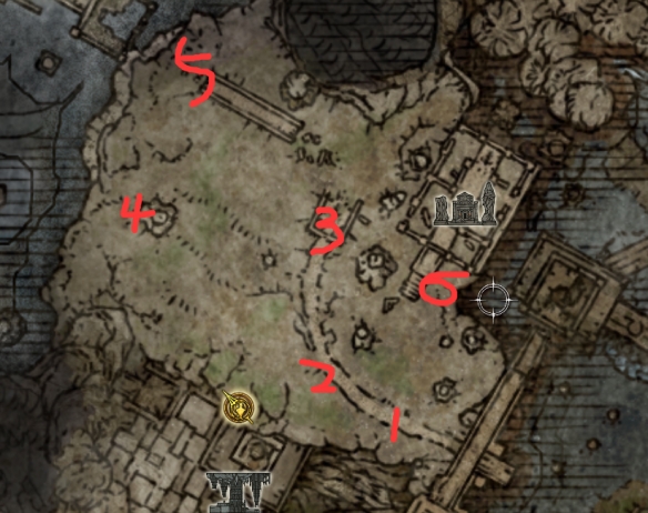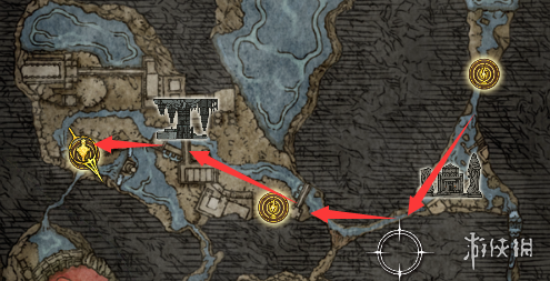 第二幅圖有更簡單的走法,先去學院門前鎮的賜福拿地圖碎片,然後按地圖引導稍微偏北一點的方向可以找到個亭子,地圖上的標記是個圓圈中間有個實心圓點,亭子里有個傳送門可以直接傳送到利耶尼亞北岸的地圖碎片點上,這是開這整片圖最快的方法。