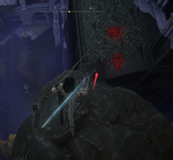 任務道具路線,下這個坡後,沿路走到指路點,左邊有個不太好看見的狹縫,到這里後有賜福點,可以安心了。