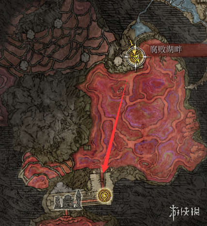 需要一提的是,災厄之影的位置,他在諾克史黛拉水潭賜福點,他會在左邊的畫圈的位置出現(有點強)(你從升降台下來後,請務必去立馬賜福點記錄一下)