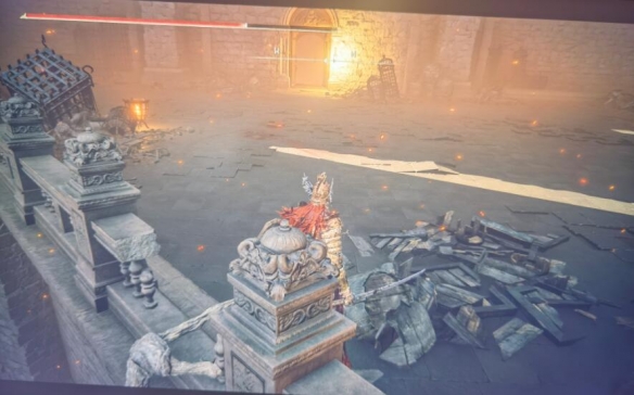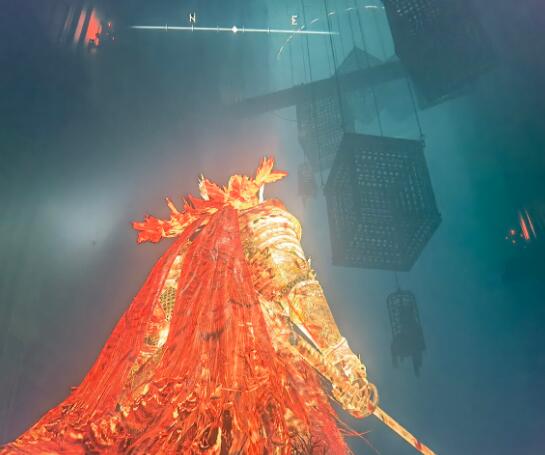 然後滑落到右側熔岩泡建築池裡,找到城市(耐心多走走,總能找到),有兩個蛇頭雕塑的建築(下面洞里有咒蛙)上去,走甩火焰鞭子蛇那邊,有個霧門需要插鑰匙,然後一路跳鐵籠下跳(血源老獵人工廠既視)就到了。