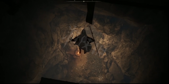 如下圖所示,首先我們需要來到現在所在的位置,進入礦洞後一二層之間還有一個不會停留的洞,進入這個洞中。