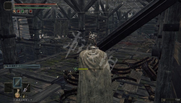 下面是一個大平台,有三個靈體士兵,一個射弩,兩個近戰,靠近就會現身,血很厚,建議不要戀戰,還好我巨劍依然可以一刀一硬直。