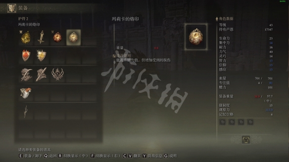 法師神器護符瑪莉卡的烙印,智信感+3。