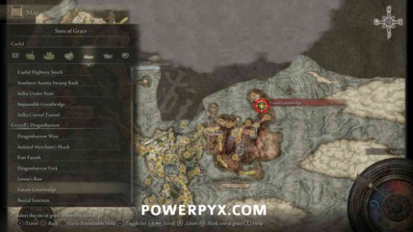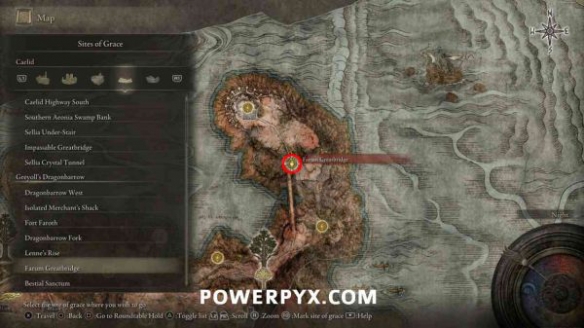 傳送過來後,沿著樓梯往下,越過鳥人雕像後一直往南走,來到橋頭處,這裡有一個賜福。