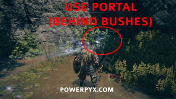 來到寧姆格福的教堂(如下圖所示),教堂的北邊是一個小湖,湖東邊的灌木叢後有一個傳送門,和它互動並傳送到蓋利德北部。