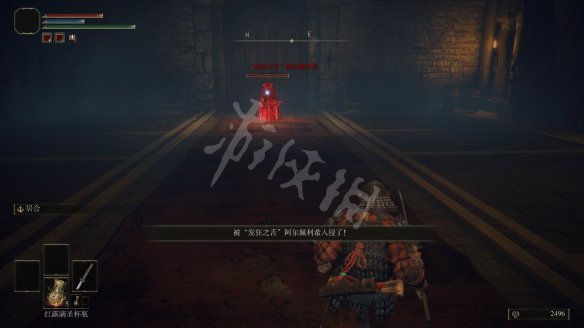 在一樓大廳會遇到一個入侵的Npc“發狂之舌”,用重武器持續打出硬直可以輕松消滅,注意他的攻擊會附帶凍傷和出血的Debuff,半血時會嗑藥回復一次。