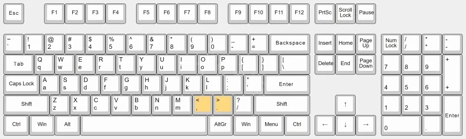 逗號鍵選擇上一個,句號鍵選擇下一個。