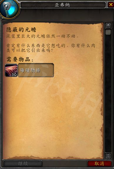 第二天:交付 30x 晦暗肋排。(暗影界野獸幾率掉落或在拍賣行購買)