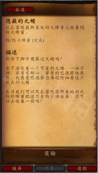 第一天:在扎雷歿提斯地圖任意元蜂小怪身上獲取15個元蜂蜜。
