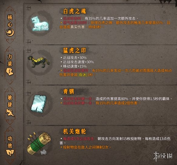 白虎之魂和狼王白鬃其實難分伯仲,但前者能從攻擊速度和傷害特效中獲取更多的收益,因此與猛虎之印非常搭。(例如鋒銳之牙的流血效果就不適合高頻攻擊,已有此狀態相當於浪費了)