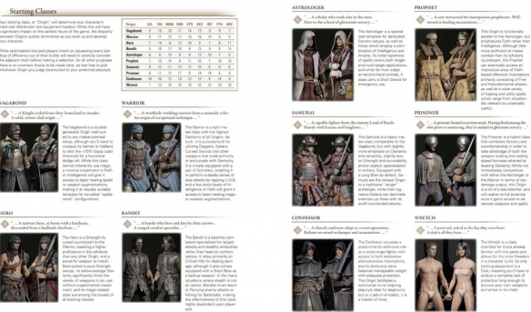 再強調一下,職業選擇在魂系列只是初始的一段時間有較大影響,後面獲得了對應的道具和武器之後互相就區別不大了,主要的職業選擇方法要麼是為了那個味道選擇不幸之人,要麼就是選擇一個主要加點符合你的玩法以及廢點較少的角色(比如你完全不想放法術就選個智力最低的)。