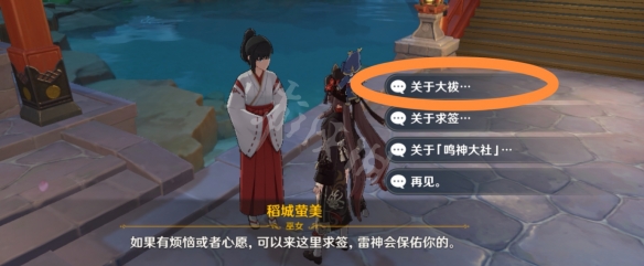 來到鳴神大社與稻城螢美對話(傳送點一來就是)。