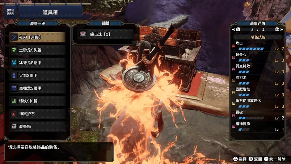 集會5星→圖1配裝,平民迅刀畢業裝,滿配需要納刀2S2護石。開荒過程中沒有納刀護石,不過打雷神龍之前也做不出超心珠弱特珠,所以往孔里塞納刀出湊出納刀3就行。