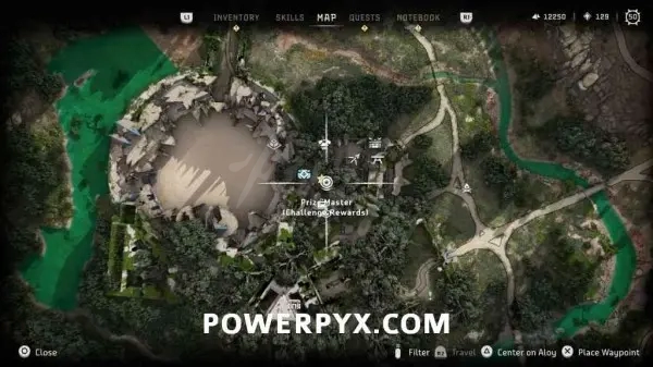 狩獵場勛章可以在競技場外與獎品大師兌換獎勵,地圖位置顯示為【競技場入口】: