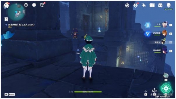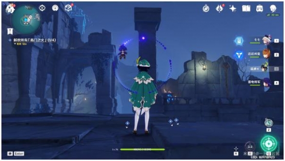 如圖前往二樓,第一個火可以使用溫迪萬葉,或者從旁邊石柱滑翔過來
