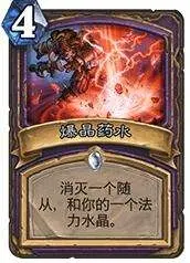絕對實力的硬解,前期可以先利用隨從或其他法術稍微維持一下場面,規避爆晶的負面效果,等到10費之後,這張卡基本上可以把描述改成“消滅一個隨從”了。無視水晶被爆,變成一張純四費硬解。對面大哥來一個死一個。