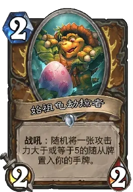 2費2-2的正常身材,戰吼效果一般情況下給的都是大哥,就算不是大哥也會有蒼綠長頸龍這樣樸實無華的好卡,屬於無論前期後期都是不錯的卡牌。