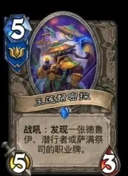 競技場德魯伊神卡。單憑實力能擠進天梯的卡牌,648嘲諷的合格身材,同時還能發現一張龍牌(這要是發現個伊瑟拉嘿嘿嘿),在站場和補資源方面都是當之無愧的強,競技場這張牌看見多少就拿多少。