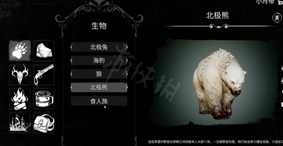 手冊中的內容對新手玩家非常有幫助,它會顯示武器武器的種類以及各種武器傷害,以及不同的北極動物和北極動物將會構成的威脅等信息。
