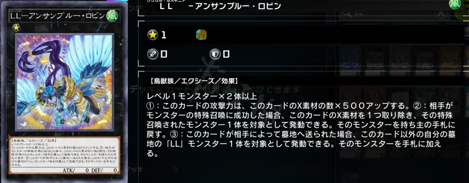 ●這次XYZ召喚成功的場合,以自己墓地1隻「 抒情歌鴝 」怪獸為對象才能發動。那隻怪獸在這張卡下面重疊作為XYZ素材。