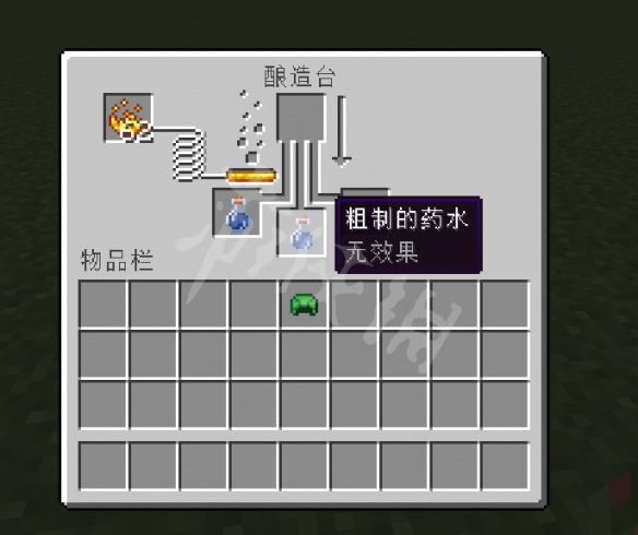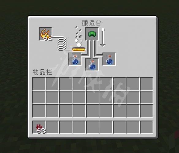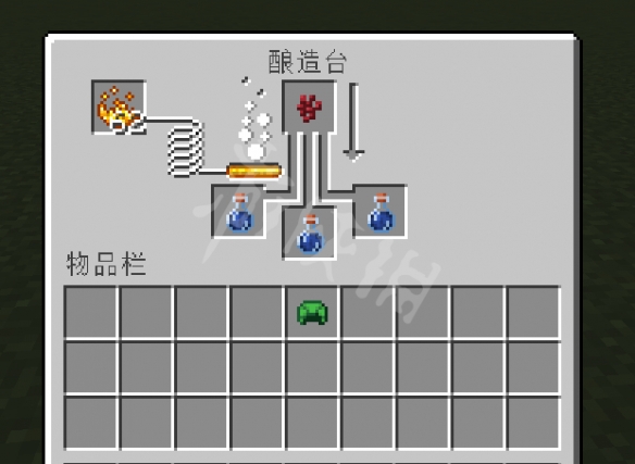 首先放上烈焰粉,水瓶,然後加入下界疣,這樣可以煉製粗製藥水。