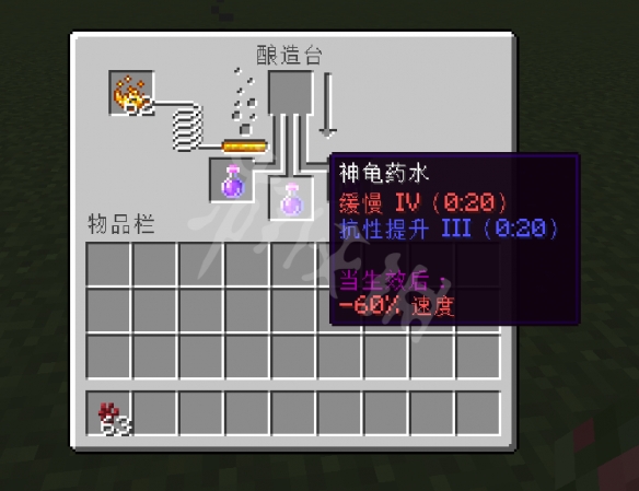 水瓶,烈焰粉,釀造台,下界疣,海龜殼。
