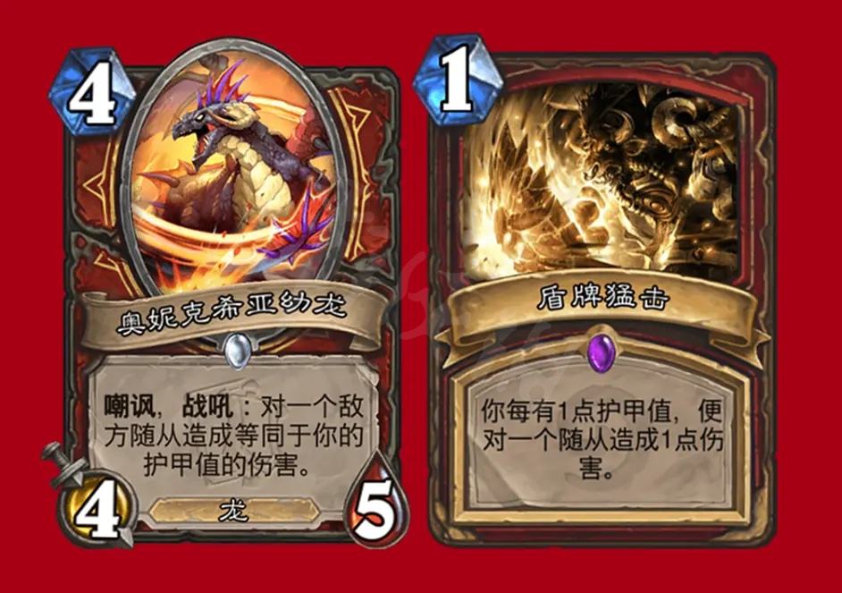奧妮克希亞幼龍,戰士普通隨從,4費4攻5血的龍,嘲諷,戰吼:對一個敵方隨從造成等同於你的護甲值的傷害。我們就叫它盾猛龍好了,這應該是明示盾猛不在明年的核心系列裡。目前的雷矛防戰和大哥戰肯定不帶這張卡。冰風雪人:戰吼尼魯巴,嘲諷黑騎士,爐石傳說沒有完爆!