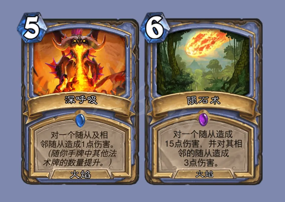別站在火里!薩滿稀有法術,火焰派系,造成10點傷害,隨機分配到所有敵方隨從身上。過載1個法力水晶。不能打臉的6費克蘇恩面具,而面具強就強在打臉。現在高費解牌及格線是消滅而不是造成傷害,呼啦都成時淚了,更別說是大號奧術飛彈。有永恆之火誰還帶這個?可能只有腐蝕薩會考慮塞一張。