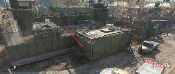 此處有一個非常顯眼的紅色建築,十分方便定位。就在紅色建築旁邊的軍用集裝箱,並且無戰斗,過完序章就能來拿。