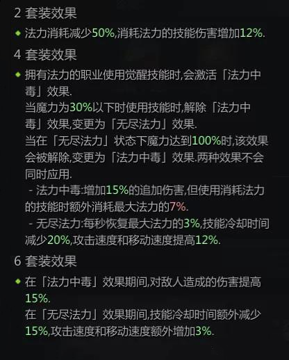 魔力套:適用於技能命中比較准,平時特別缺藍的玩家,這套在操作得當的情況下比雷火套傷害高。