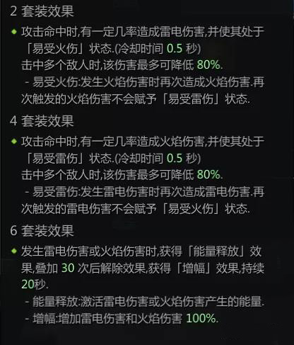 雷火套:適用於技能命中還不太准,有時候BOSS機制,丟個小炮塔在那邊都可以有很高的輸出,就算沒藍,普攻都能觸發套裝效果打傷害,非常輕松的一套。