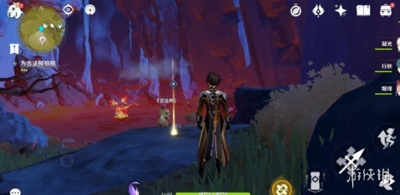 然後根據下一步任務指引,來到爆炎樹一邊(這個任務在爆炎樹洞穴一邊,不在地面上)然後與吉法師對話,並且拍照。