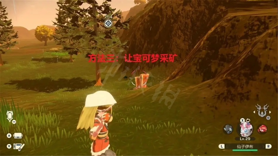 除了以上兩種方法外,第三種方式就是讓寶可夢去採礦。這是一個兩全其美的好方法,反正游戲裡的礦石都很實用,作為必需品,肯定是要採集的,同時可以提升親密度,何樂而不為?至於具體方法的話,很簡單!我們直接將寶可夢投向路邊的礦石、水晶就可以讓它自己幹活了。