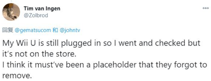 但值得注意的是,部分WiiU主機玩家表示自己並沒有在遊戲商店中發現這款遊戲。同時,打開任天堂官網上的遊戲鏈接後會提示「頁面刪除」。