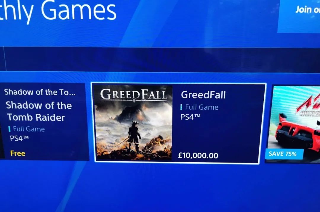 此前我們曾報道過1月的PS+會免遊戲為《古墓麗影:暗影》,《食人鯊》以及《貪婪之秋》。不過推特用戶「Andreas K.」震驚的發現,會免遊戲中的《貪婪之秋》正以高達10000英鎊(約人民幣87840)發布在PS store上。不過「Andreas K.」也補充表示,該錯誤僅在ps4 pro上遇見,網頁端並沒有這樣的情況。該推文也得到了一位用戶的回復,表示自己也遇到了相同的情況。