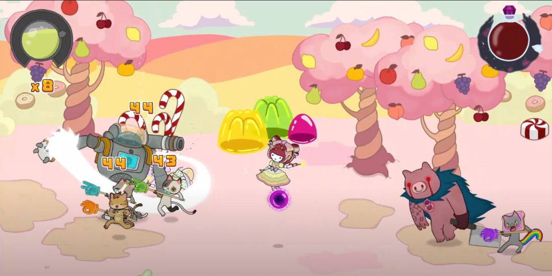 她的朋友是一個特別討厭蔬菜的孩子,食肉主義愛好者。直接與大血豬結合進行戰斗。小孩子無厘頭摧毀世界啊?不要在乎這個爛故事背景,該游戲就是動畫風格的橫版動作游戲。