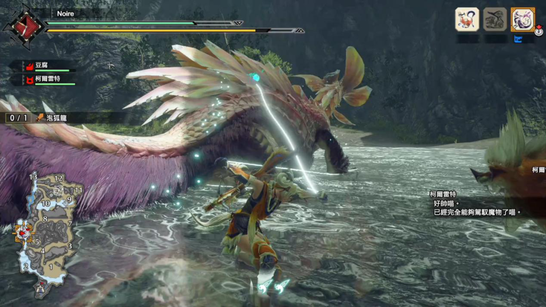 首先要想騎上泡狐龍,就要讓怪物先進入「待操龍狀態」。待操龍狀態可以通過使用翔蟲進行跳躍攻擊或使用鐵絲蟲招式來累計觸發,或者使用傀儡蜘蛛等環境生物也可以使怪物進入「待操龍狀態」。並且在本作中怪物間互相造成的傷害也都會累計待操龍狀態的量表,亂入怪終於有點用了。