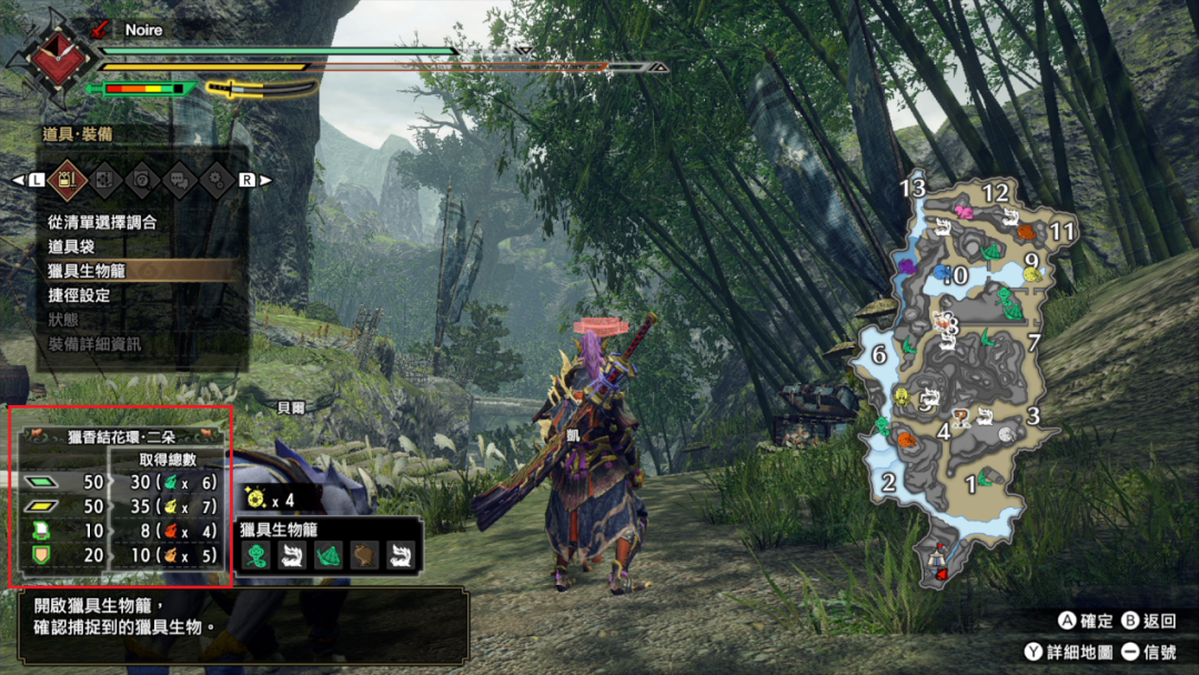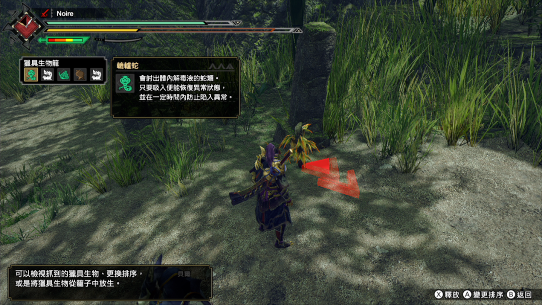 按+鍵打開菜單,選擇獵具生物籠就可以查看持有的獵具生物及功能,並且可以選擇放生不需要的獵具生物。