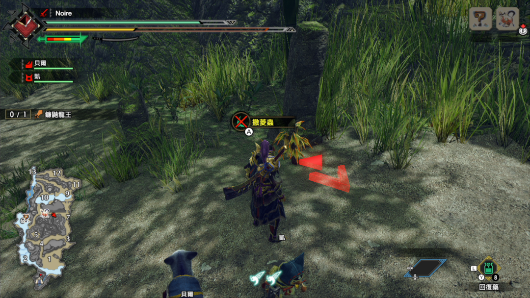 需要注意的是近戰武器與遠程武器使用鐵蟲絲技的組合鍵是不同的,近戰武器為ZL鍵加X或A鍵,而遠程武器由於ZL鍵用於瞄準所以需要按R鍵加X或A鍵來使用鐵蟲絲技。精通多武器的獵人在切換武器時需要注意一些,避免在戰鬥中罰站。