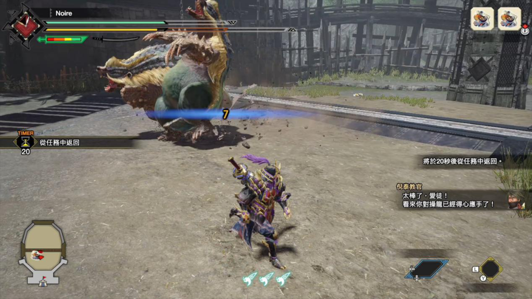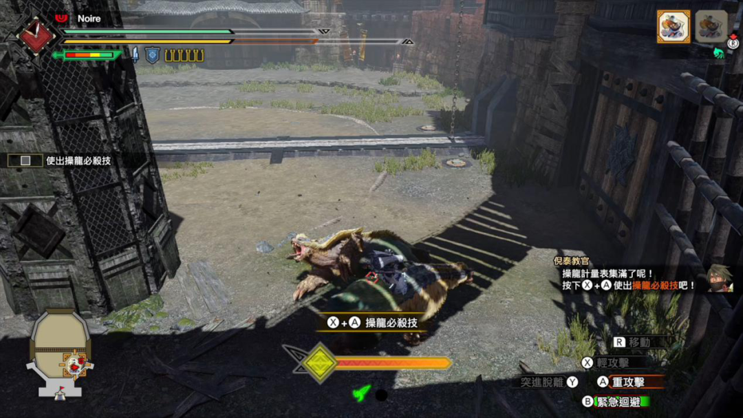在操龍狀態下按R鍵可以控制怪物進行移動,不過由於怪物比較笨重,所以轉彎、轉身等行為往往較為難以快速完成,這裡個人推薦利用不消耗翔蟲量表的普通迴避來調整怪物的位置。