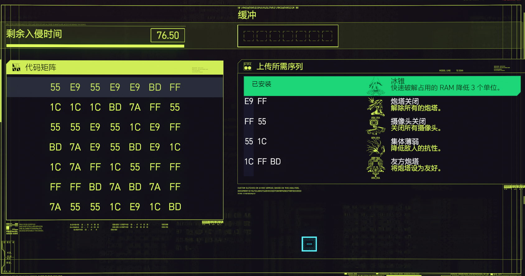 如上圖所示,這個小解密十分簡單,根本不需要什麼會程式碼,會黑客技術(HHH),其實就是一個簡單的找規律小遊戲。流程就是,右側的上傳序列是我們的目標序列,左側是一個程式碼陣,我們需要根據規則來逐一選出右側所需數列的數字,規則就是在一行一列的順序下找出所有程式碼,第一次選擇必是第一行,然後是你所選擇數字所在的列中選擇,然後行,然後列。成就要求是上傳3條魔偶,我們就需要一次解鎖3條序列才可以,就是一個找規律。右側的程式碼也會根據你的選擇變化,假如右側第一列數字均為E9的話,那麼你在左側選擇E9,則會解鎖右側第一列所有的E9,所以怎麼能最快的把右邊 一列搞成同樣數字是關鍵。如果是黑客流的玩法,那麼肯定開局就會解鎖一條數列(黑客流加點可以開始就解鎖一條),這樣會更加簡單一些。